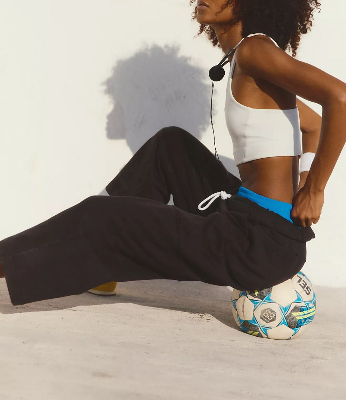 Take every fitness-focused 'fit up a notch with these effortlessly essential pants featured in a slouchy, relaxed fit with slightly tapered legs and defined seaming throughout for added shape and dimenison.