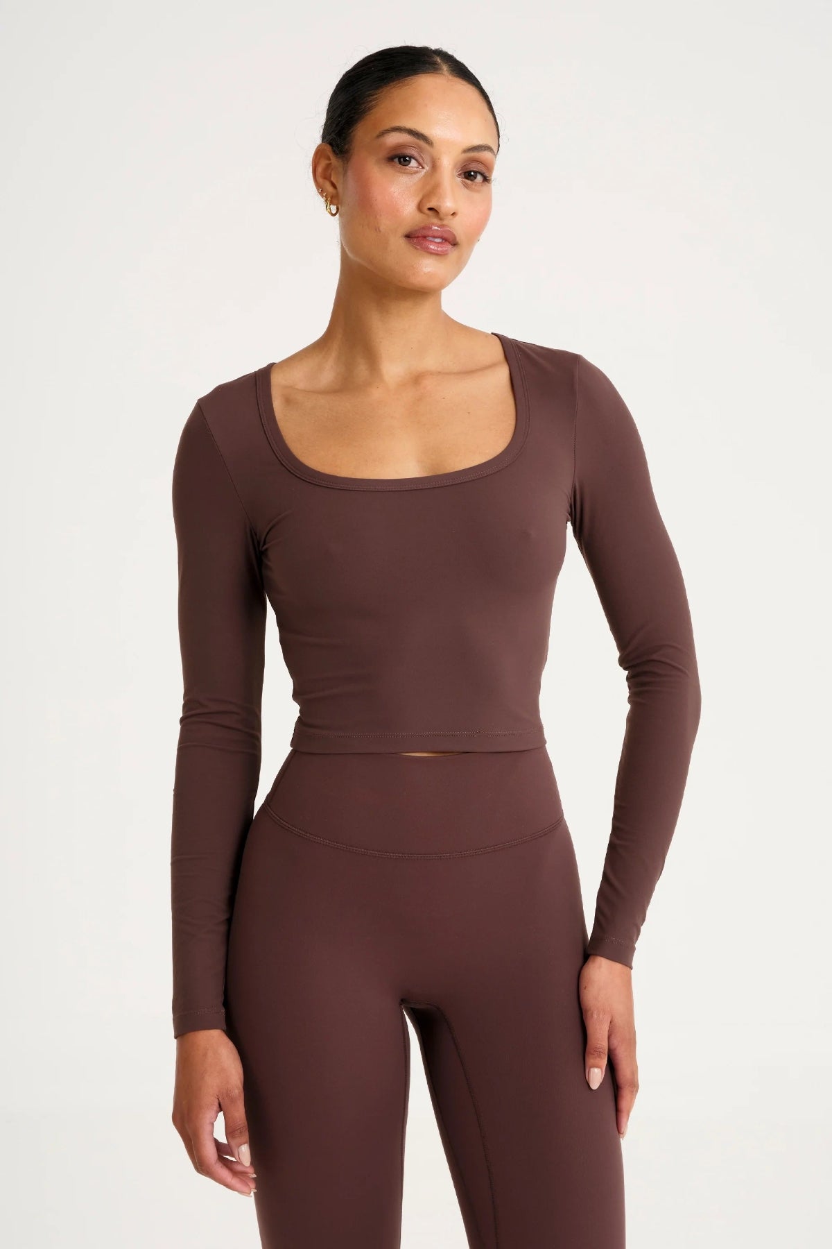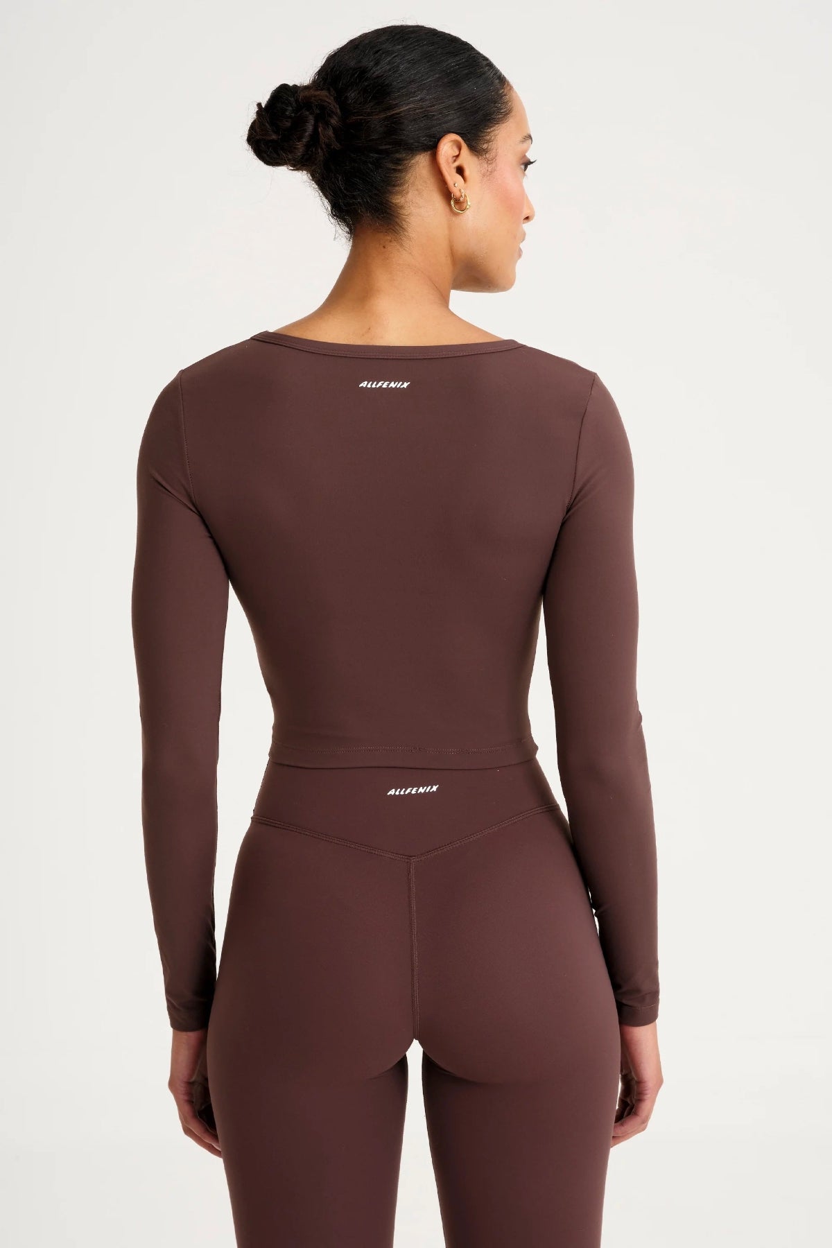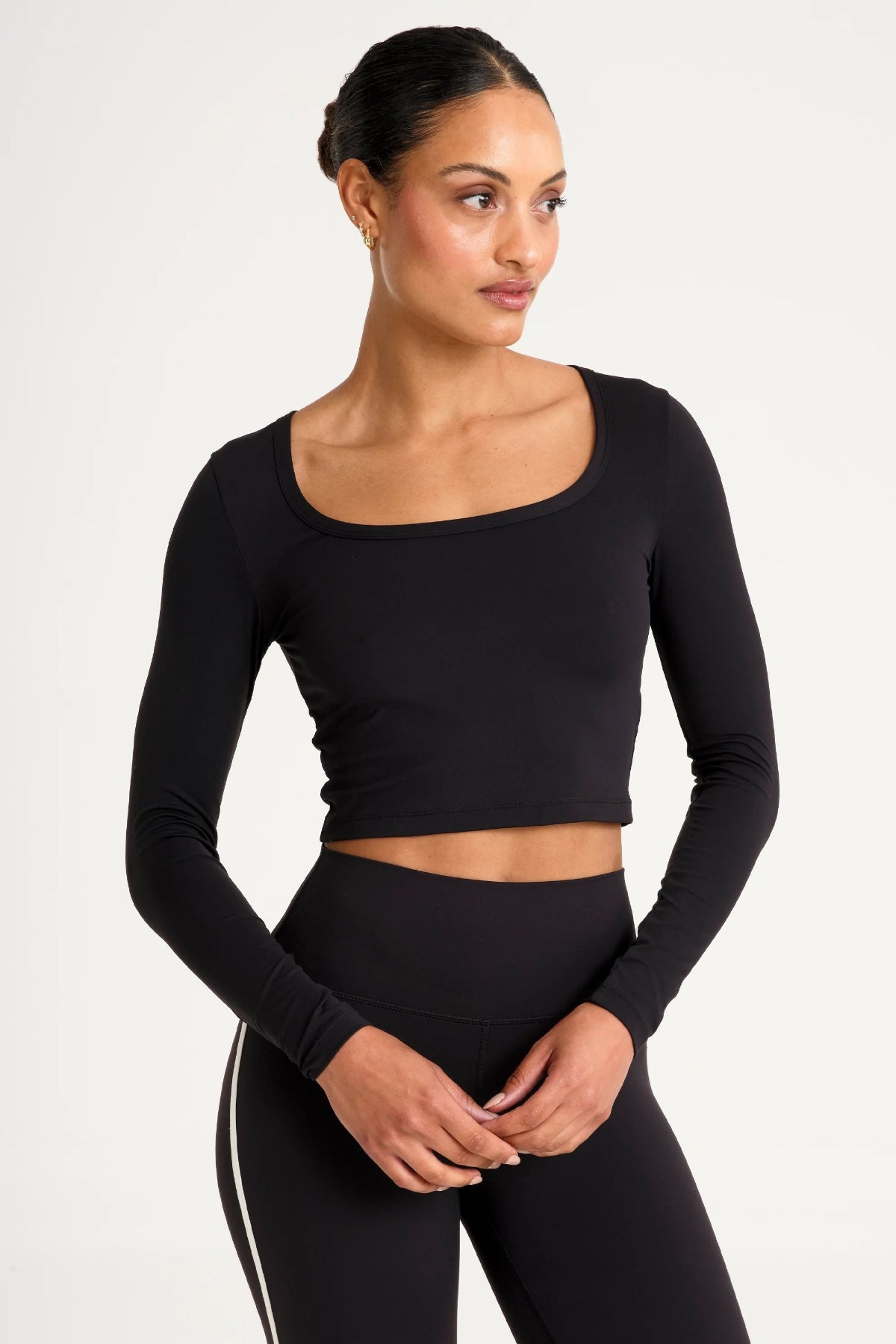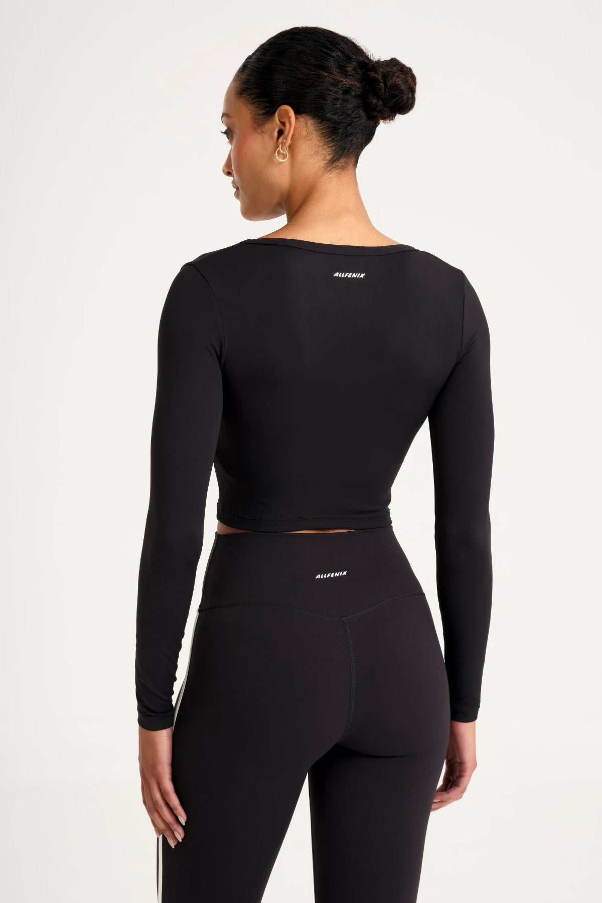 A modern take on everyday comfort. The ALLFENIX CloudCore Lite Scoop Long Sleeve is crafted from buttery-soft, ultra-light fabric that feels like a second skin. Designed with a flattering scoop neckline that elongates the neck and softens the shoulders, it’s cut to a shorter length for the perfect balance of coverage and style. With fast-drying breathability, it keeps you cool and comfortable from studio flow to everyday wear.