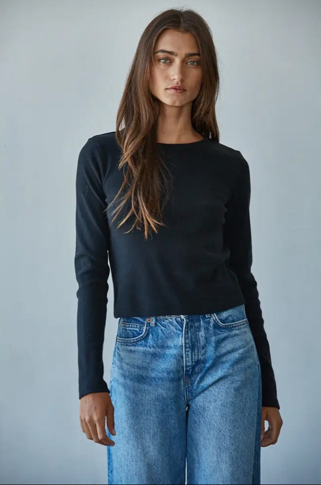 By Together Knit Cotton Round Neck Long Sleeve Crop Top