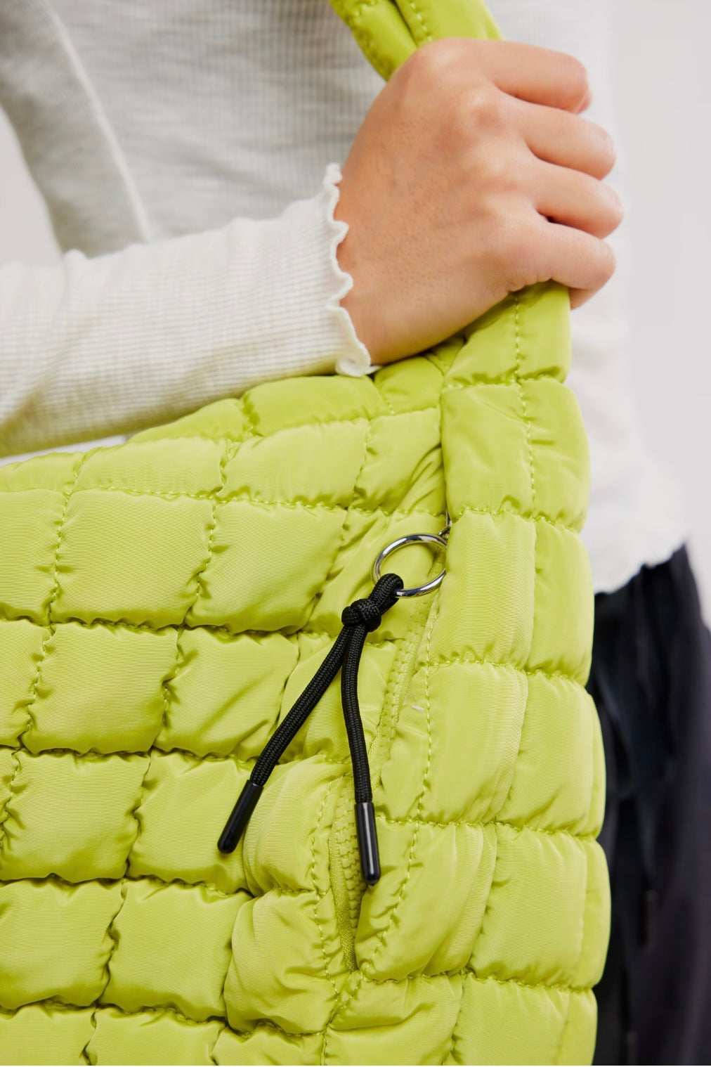 To and from the gym, and everywhere in between, carry it all in this so essential and seriously slouchy bag featured in a lightweight, quilted fabrication.