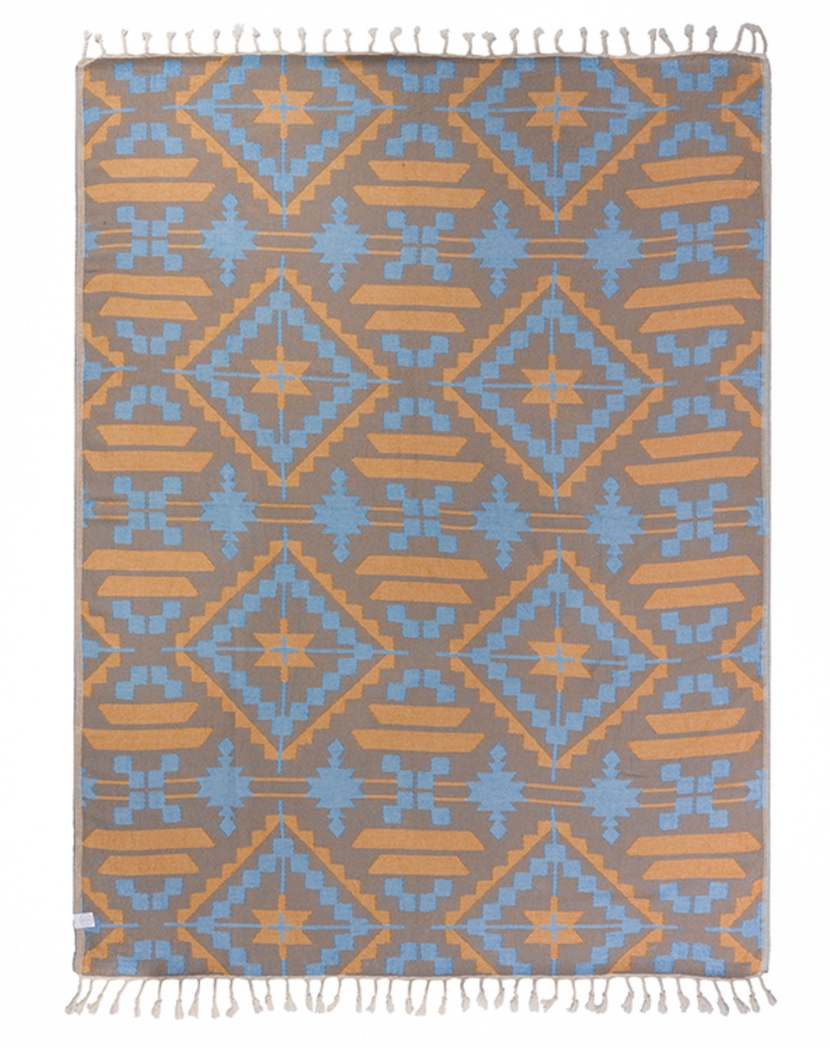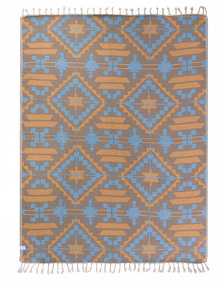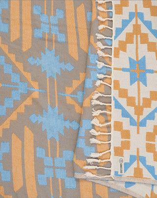 Southwestern inspired design, blanket, made from organic cotton for a softer hand feel and a better sustainable product, large size, jacquard weave and twisted tassels.